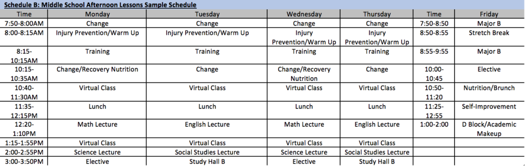 We work directly with families whose schedules need additional flexibility during the SAAS department scheduled activities– as we recognize that fostering talents may create a substantial conflict with our mandatory afternoon study hall and academic support schedules. We accommodate our students who need extra flexibility in their schedules with at home options for study hall sessions, schedule Friday makeup sessions, or the ability of parents to opt out of learning tools after consulting with their Academic Advisor. Personalizing the learning experience and working directly with our families to meet their students’ needs is one of the many reasons our students are able to maximize their academic and talent development success.